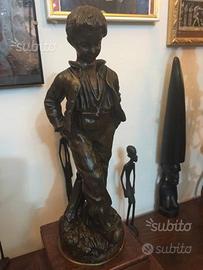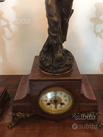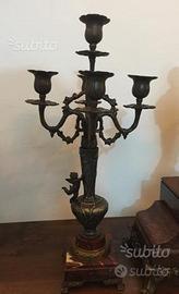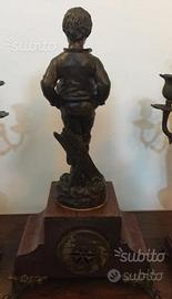 Tris "Parigina",Premiere Culotte,in Bronzo,Ottone e Marmo con Meccanismo a "Carica Manuale" da Revisionare,con Coppia di Candelabri a 5 Fiamme in Bronzo Massiccio,Ottone e Marmo,Perfettamente Tenuti.I Candelabri sn Arricchiti da un Angioletto.Misure;Orologio,altezza cm52, larghezza cm30. Profondità cm18.Candelabri;Altezza cm50,Basetta cm12.Primi 900