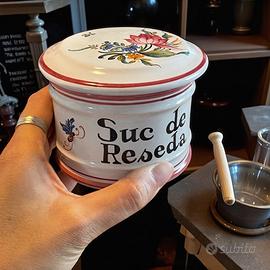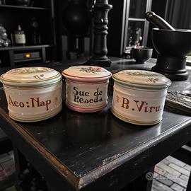 Oggi questi vasi vintage non custodiscono più sostanze, ma raccontano ancora storie di erboristi, alchimisti e antichi farmacisti. Le decorazioni floreali e le figure dipinte a mano li trasformano in oggetti dal fascino evocativo, perfetti per chi ama portare in casa l’atmosfera delle antiche botteghe.