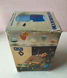Tritaghiaccio OMI a manovella, vintage, anni '60-'70, marca OMI made in Italy. In plastica dura, bianco e azzurro, 4 lame in acciaio inossidabile. Funzionante e in ottime condizioni, essendo stato utilizzato pochissime volte. Altezza 21cm, diametro 12cm (16cm con manovella). Nella sua confezione originale.