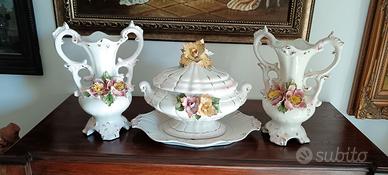 tritico capodimonte 1968 zuppiera + 2 vasi fiori