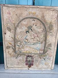 vendesi tris di quadri ricamati su tela cotone c on varie tipologie di lavorazione. Oggetti originali del 1700. Probabilmente ricamati da suore. La tela grande misura 42x36 cm e quelle piccole 18x16 cm Il lotto si vende in blocco a euro 400 trattabili. Se interessati chiamare il seguente telefonico 3701511766. No spedizione.