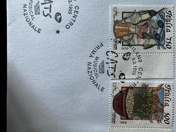 - Affrancature con francobolli della serie “I Cibi Italiani” (2ª emissione, 4 marzo 1995): Lire 500 («Il Riso») e Lire 750 («L’Olio / Le Olive»).