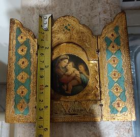 Trittico fiorentino in legno dorato Madonna e Gesù