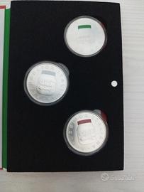 trittico composto dalle 3 monete argento del 5 euro Nutella verde bianco e rosso.
