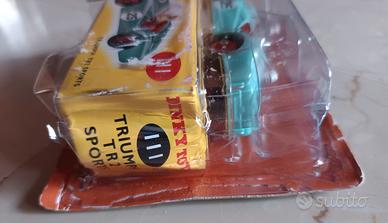 Modellino di Triumph TR2 sports in scala 1:43 marca dinky Toys , completa della relativa scatolina