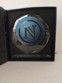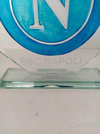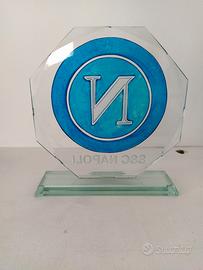 Un trofeo da calcio in vetro temperato da collezione con logo sportivo della SSC NAPOLI firmato dall'artista
