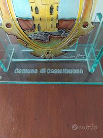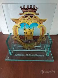 Uno splendido trofeo in vetro temperato da collezione con lo stemma araldico del Comune di Castelbuono