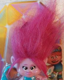Personaggio: Poppy con i suoi iconici capelli rosa shocking.