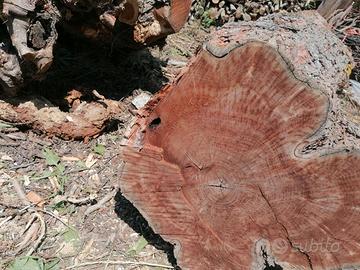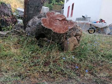 troco di gelso alto cm. 110 con diametro cm. 50, inoltre un tronco tagliato nell'impalcatura per creare un tavolo artistico. l'idea potrebbe essere, credo, di creare un panchina con il tronco tagliandolo in due in modo verticale, fare il tavolo con il tronco tagliato nell'impalcatura, la parte più lunga misura i,15 cm. da ritirare al mio domicilio