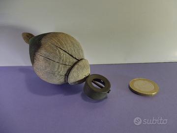 Antica trottola in legno tornito risalente inizio '900, diametro cm.5, altezza cm. 10,5. Stato come da foto. Spese di spedizione a parte. Contatto telefonico.