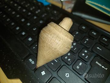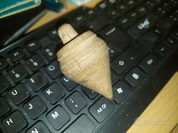 Gioco tradizionale degli anni 30, chiamato "carrocciolo", veniva lanciato tramite una cordicella, usando varie tecniche. Oggetto originale dell'epoca, molto raro.