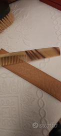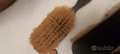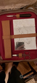 Trousse tipicamente anni 40-50 del secolo scorso. Esterno in pelle. Pluriaccessoriata. Due spazzole con manico in legno; specchio con bordi smerigliati; bottiglie complete di doppio tappo (quello interno in vetro). In particolare il pettine è in corno naturale. Ritengo non sia mai stata usata. Solo lo specchio mostra qualche traccia del tempo trascorso. Chiusura con cerniera. Oggetto non dozzinale ma con rifiniture e particolari di pregio. Cm. 19x24x4. Sempre disponibile per ulteriori foto o informazioni. Euro 28. Pagamento e spedizione esclusivamente tramite tutto Subito.