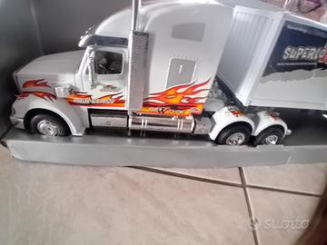 Truck model bianco con adesivi, nuovo mai usato, scala 1,24 con funzionamento a frizione, da collezione, per inutilizzo Scatola rovinata su un lato,di dimensioni cm 77 × altezza cm 22 x larghezza cm 16. Veicolo lungo circa cm 75. euro 16. x info Fabio 347 6049606.