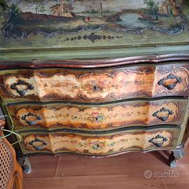 Vendesi meravigliosa Credenza -Trumerau Originale del 700 in Stile Barocco-Veneziano rigorosamente dipinta a mano con dipinti di estrema bellezza sicuramente da artista di indiscutibile abilità e probabile fama internazionale...Le condizioni sono buone come da foto....