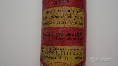 Confezione vuota vintage anni 60 di MAGNOGENE laboratorio chimico GRANELLI Milano altezza 10,2 cm diametro 2,7 cm Ritiro a mano a Bologna o possibilità di spedizione