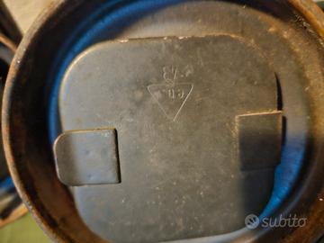 Cedo 2 tubi ruspanti portamaschera antigas tedesca ww2, entrambi marcati ebd43, mancanti del gancio di apertura