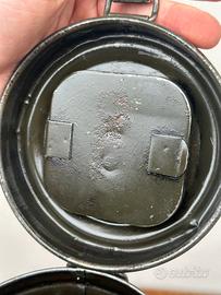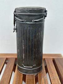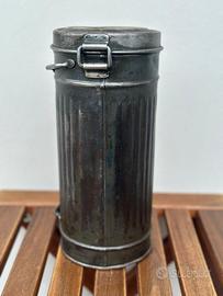 Contenitore tubo per maschera antigas tedesche WW2, datato 1942 (vedasi foto). Ottime condizioni, vernice originale, ben tenuto e ingrassato. Ottimo pezzo da collezione.