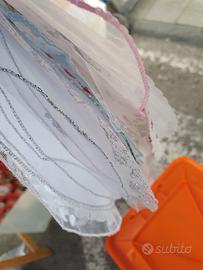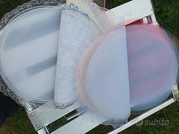 N.70 Tulle-veli per bomboniere. Circa 40 semplici in tinta unita, 30 con orlatura colorata o a fantasia.