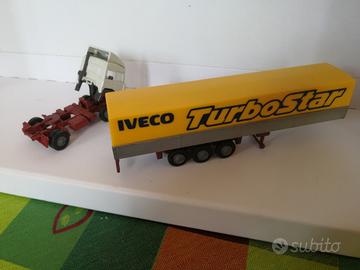 Offro modello in metallo presso fuso marca Old Cars, scala 1.87, Iveco 190 48 turbo star e semirimorchio 3 assi. Fotografie eloquenti. No box.