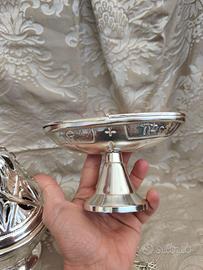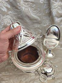 Incensiere e navicella in ottone argentato, appena restaurati. In condizioni perfette Sono di metà 900