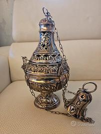 turibolo molto grande nuovo tutto cesellato a mano con argentatura a 24 Micron (a spessore) €1500, tel. 3270662642