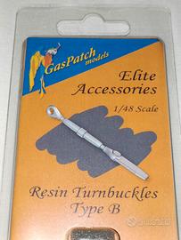 Turnbuckles Type B Gaspatch Models 1/48. Terminali in resina per ricreare gli ancoraggi dei tiranti sui velivoli della Prima Guerra Mondiale. Nuovo, ancora sigillato contiene 50 pezzi, in perfette condizioni come da a fotografie.