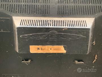 Televisore raro vintage anni 70 INDESIT 24 L da 24 pollici in bianco con 6 programmi di sintonizzazione meccanica della tastiera. Queste tv erano affidabili e facili da riparare. Il set presenta un telaio misto di tubi e semiconduttori.