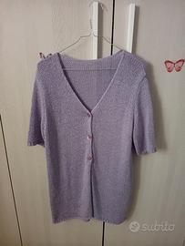 Bellissimo twin set vintage anni '90, color lilla, in cotone e acrilico. - Perfetto per un look casual chic. - Maglia con bottoni. - Mai usato.