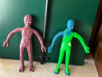 1996 UFO Files vintage Alien figures: Brain Alien e Green Alien. Sono Glow in the Dark, gli occhi e la parte nel ventre del Green alien si illuminano al buio. no masters of the universe food fighters Exogini monster in my pocket Star Wars ghostbusters tartarughe ninja mighty max power rangers action man x-files