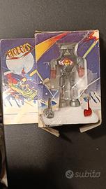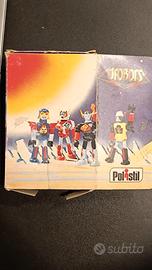 La scatola no bene, il polistirolo è ottimo. Il robot è nuovo però mancano pugni e armi e quelli che ci sono sono rotti come da foto.