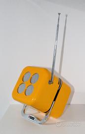 Ultravox Quadrifoglio - Radio Cubo - Gialla - Arredamento - Modernariato Vintage Fantastica e introvabile in questa colorazione, in splendide condizioni estetiche, tecniche e funzionali. Design di Bandini Buti per Ultravox, eccellenza italiana degli anni ’60/’70: compatta ma di enorme impatto visivo. La vivace tonalità gialla cattura immediatamente l’attenzione, rendendola riconoscibile a colpo d’occhio. Autentico oggetto iconico di modernariato vintage e arredamento industriale commerciale d’epoca, perfetta per allestimenti di negozi e vetrine, noleggi, shooting fotografici e rievocazioni storiche. La radio è perfettamente funzionante, fornita con cavo di alimentazione nuovo incluso nella vendita. È stata lucidata e trattata con prodotti specifici antigraffio, pronta per essere esposta o utilizzata immediatamente. Fantastica idea regalo. Le foto sono parte integrante dell'annuncio, quindi guardare bene o chiedere altre informazioni prima di procedere con l'acquisto. Grazie No Kartell Artemide Eclisse solari brionvega castiglioni colombo Sapper Zanuso flos guzzini arteluce Mazzega Nason stilnovo Rodolfo Bonetto guzzini Joe Colombo reggiani studio erre rexite Giancarlo Piretti Enzo Mari Castilia Celada Fontana Arte Europhon Ultravox Autovox Weltron Juke Box Fornasetti Carrara e matta.