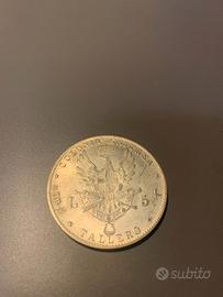UMBERTO I COLONIA ERITREA TALLERO 5 Lire AG 1891