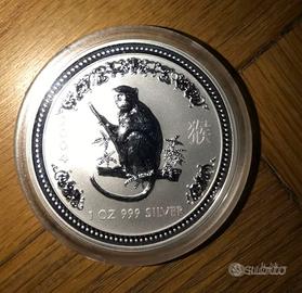 Moneta in argento - 1 dollaro australiano anno 2004, dedicata all'anno della Scimmia, calendario cinese.