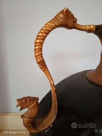 Un magnifico prodotto dell’arte indiana: una giara di grande dimensioni realizzata in ottone battuto a mano e decorato a mano. Le maniglie zoomorfe e il sole al centro dell’oggetto, rendono questo oggetto meraviglioso sia posato a terra, sia in un mobile.