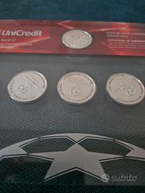 UniCredit UEFA Champions League Set Monete Ufficiali 2015/16 – Edizione Limitata Descrizione Set originale UniCredit – UEFA Champions League Official Match Coin Collection, stagione 2015/2016. Si tratta di un set da collezione in edizione limitata, emesso da UniCredit in qualità di Banca Ufficiale delle Competizioni UEFA per Club. Il set include: 6 monete ufficiali UEFA Champions League Espositore originale in plexiglass Custodia esterna originale Certificato di autenticità Condizioni: Ottime (vedere foto). Conservato con cura in ambiente non fumatori. Ideale per: Collezionisti UEFA / Champions League Appassionati di memorabilia calcistica Regali aziendali o premium 📦 Imballaggio sicuro e spedizione rapida 📍 Spedizione dall’UE ❗ Le monete sono oggetti commemorativi da collezione, non moneta a corso legale.