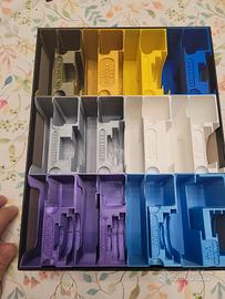Organizer modulare per gioco Unmatched. Con questo organizer possono starci fino a 12 personaggi in un'unica scatola originale da 4, come per esempio Cobble&Fog.