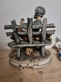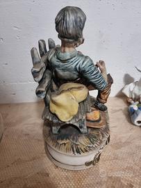 Statua uomo anziano che beve. Capodimonte ha il tappo del vino sbeccato