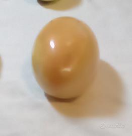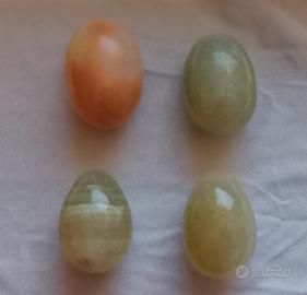 set di 4 uova in alabastro, colori vari, la più grande di colore giallo oro, presenta una piccola scheggiatura all' apice. ,evidenziato nell'ultima foto.