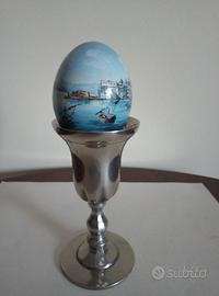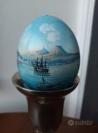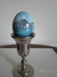 Uovo dipinto raffigurante il golfo di Napoli, oggetto decorato con la tecnica della miniatura, curato nei minimi particolari, esempio vero e proprio di scuola napoletana. Viene proposto con il calicino di sostegno in sheffield, prezzo minimo. Mis. h 15 cm Per info 340 6203846 o WhatsApp.