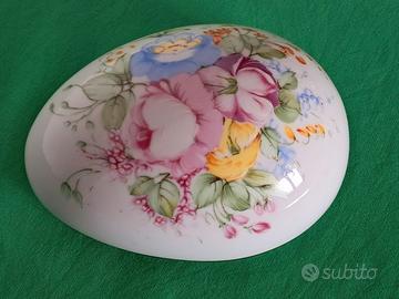 Scatola con coperchio a forma di uovo in porcellana Limoges Francia.