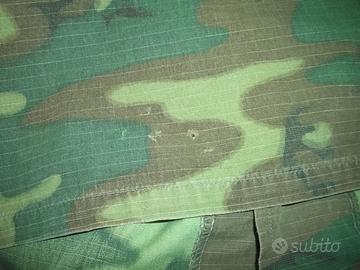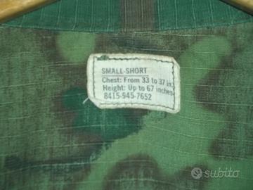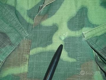 NON ACCETTO TRANSAZIONI TRAMITE SUBITO. Se interessati, contattatemi. Us Army Green Dominant Erdl Jungle Fatigue Small-Short size Vietnam Era. Contract Date 1969. Usata, con qualche segno del tempo e di utilizzo. Oltre ad alcune piccole macchie su una manica, sono presenti degli "acchiappi" nella parte anteriore e in quella posteriore, in basso, come da foto. Nel complesso ancora buone condizioni. Misure : spalle cm 46, ascelle 56, lunghezza 73, manica 56. DISPONIBILI ALTRE FOTO. Spedizione € 10.80 Poste Delivery Standard