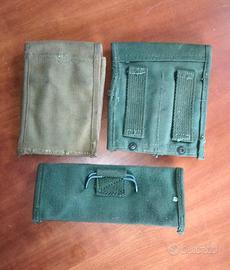 Tre "custodie" americane della seconda guerra mondiale. Tutti in ottime condizioni, tutti originali WW2. - WW1/WW2 porta caricatori caki colt 45; - WW2 olive drab 7 porta caricatori per carabina M1 marcato "Avery 1945"; - WW2 M1 Garandnd astuccio pulizia, olive drab 7, marcato 1944.