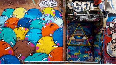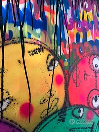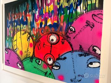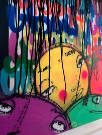 Utopia artista street art brasiliano che da anni lavora in portogallo e dipinge anche case intere nei paesi ( vedi foto) Opera spray e acrilici su tela Misura cm 70 x 90 Con cornice bianca cm 90 x 110 Anno 2020 In perfette condizioni Con disegni di. Bubbles su autentica artista
