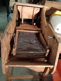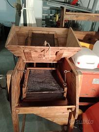 Vendo antico vaglio a mano per cereali, utilizzato un tempo per separare grano, mais e altri prodotti agricoli dalle impurità. Struttura originale in legno massello con meccanismo in ferro battuto.