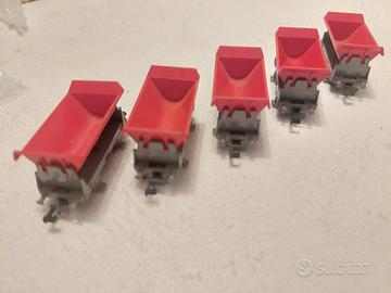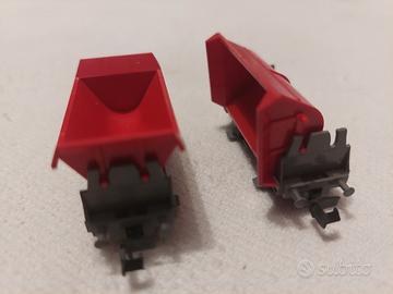 vagoni carri merci carri ribaltabili Fleischmann N 8341 numero 5 , grigio rossi presenti tutti i respingenti presenti tutti i ganci tranne uno