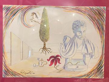 Ray Milian in arte Van Roy Dalì figlio del noto Salvador Dalì acquerello anni 80 cm 65 x 50