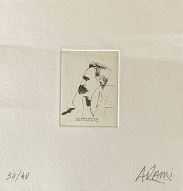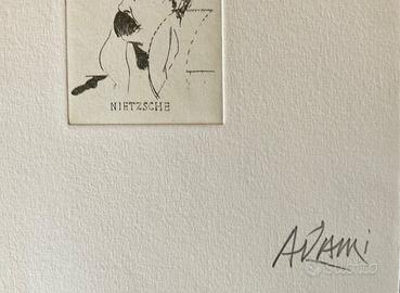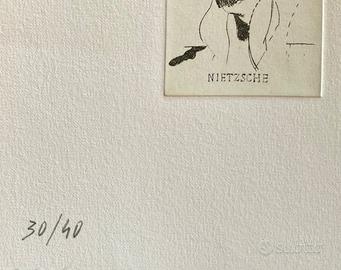 Valerio Adami Titolo: Nietzsche Dimensione: cm 20x20 Acquaforte numerata e firmata a mano dal maestro Leggera piega come da foto, ma opera storica molto particolare ed in ottime condizioni Spedizione tracciata con corriere Disponibili anche Campigli, Ugo Nespolo, Piero Gilardi, Giuseppe Uncini, Mario Schifano, Andre Masson, Botero, Egon Schiele, Escher, Roberto Crippa, Salvador Dalì, Marco Lodola, Arnaldo Pomodoro e altri