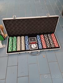 Vendo valigetta con gettoni, 2 mazzi di carte, dadi, bottone dealer, sabot tutto a 60 euro non trattabili.