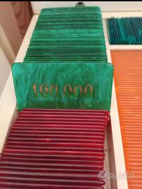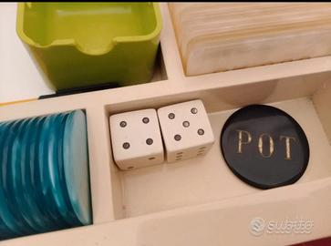 Meravigliosa Valigetta di FICHES in MADREPERLA degli anni 70, super COMPLETA di tutto, con dadi, 2 mazzi di carte ancora imballati, bottone POT, oltre 300 unità di Fiches di tutti gli importi, introvabile e veramente difficile da reperire in condizioni cosi ottimali.