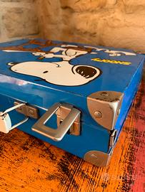 Valigetta in metallo per la scuola vintage Made in Italy Snoopy e Woodstock - Auguri di Mondadori printed by Giovanni Trimboli. Fine anni ‘70 primi anni ‘80.